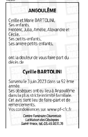 Cet espace « condoléances » est dédié à la mémoire de Monsieur Cyrille BARTOLINI.