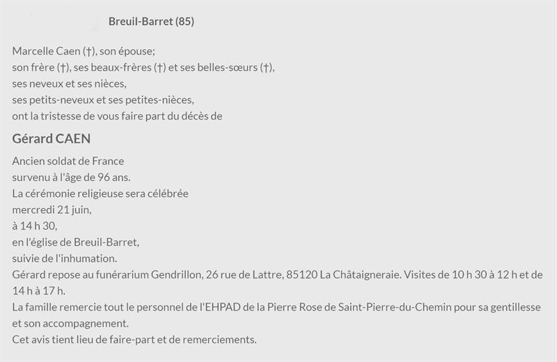 Cet espace « condoléances » est dédié à la mémoire de Monsieur Gérard CAEN.