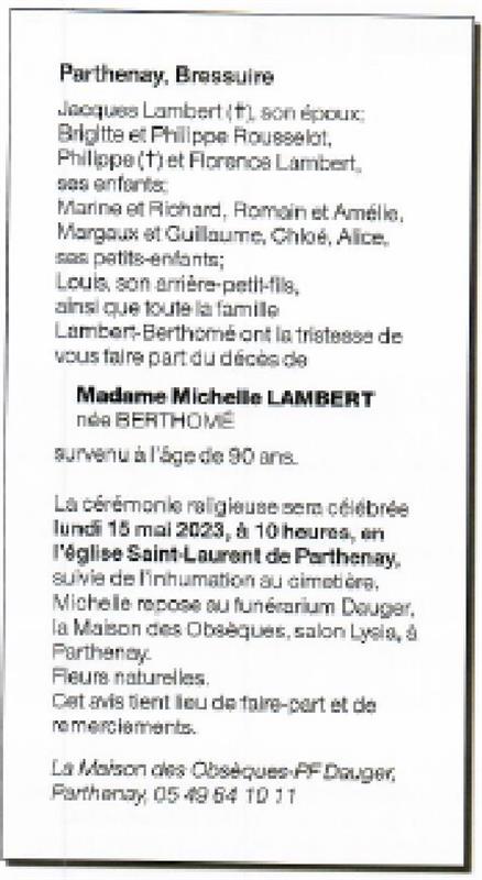 de Madame Michelle LAMBERT née BERTHOMÉ