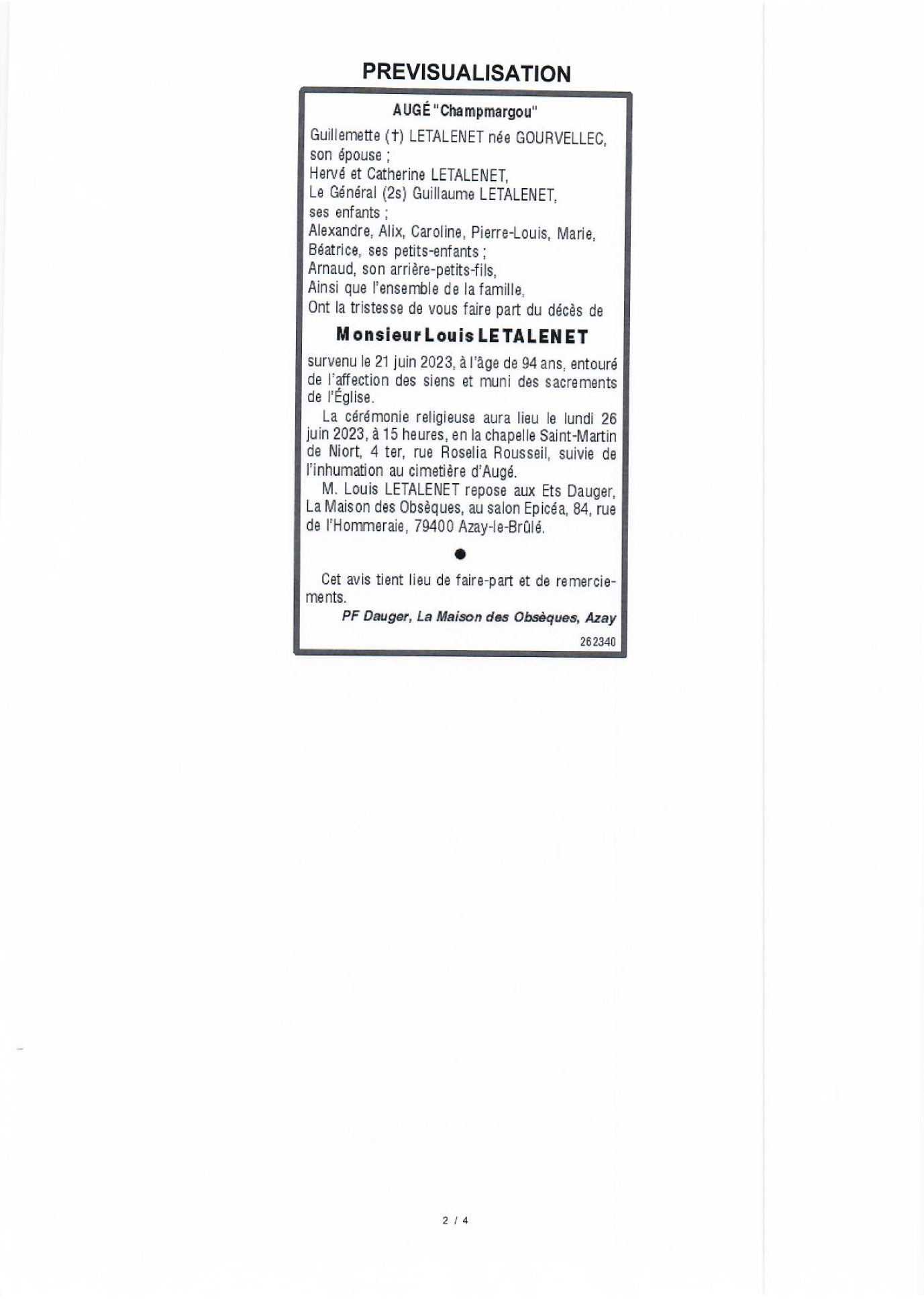 Cet espace « condoléances » est dédié à la mémoire de Monsieur Louis LETALENET.