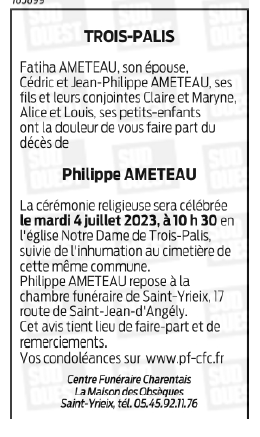 Cet espace « condoléances » est dédié à la mémoire de Monsieur Philippe AMETEAU.