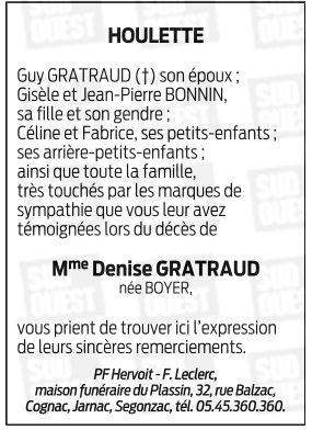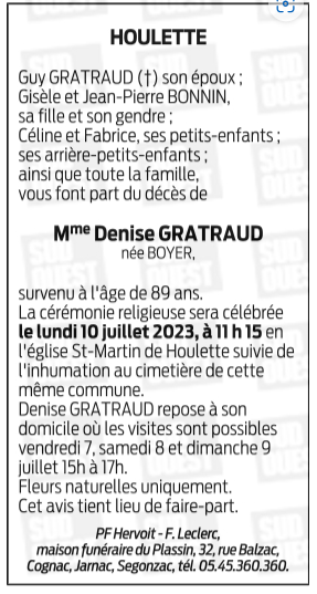 de Madame Denise GRATRAUD née BOYER