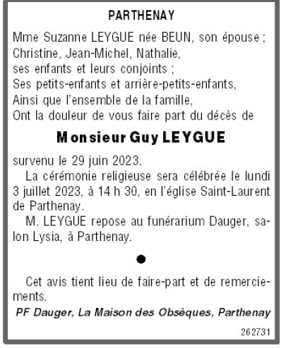 Cet espace « condoléances » est dédié à la mémoire de Monsieur Guy LEYGUE.