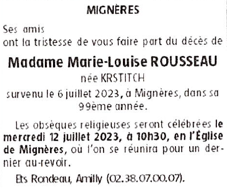 de Madame Marie-Louise ROUSSEAU née KRISTICH