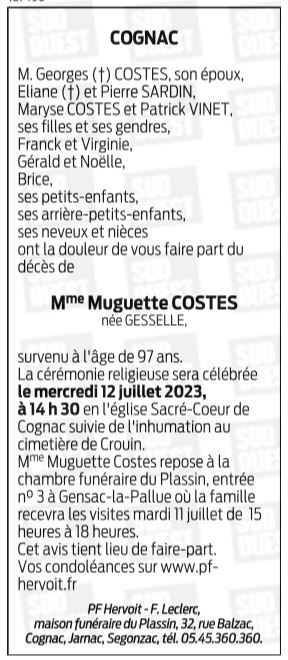 de Madame Muguette COSTES née GESSELLE