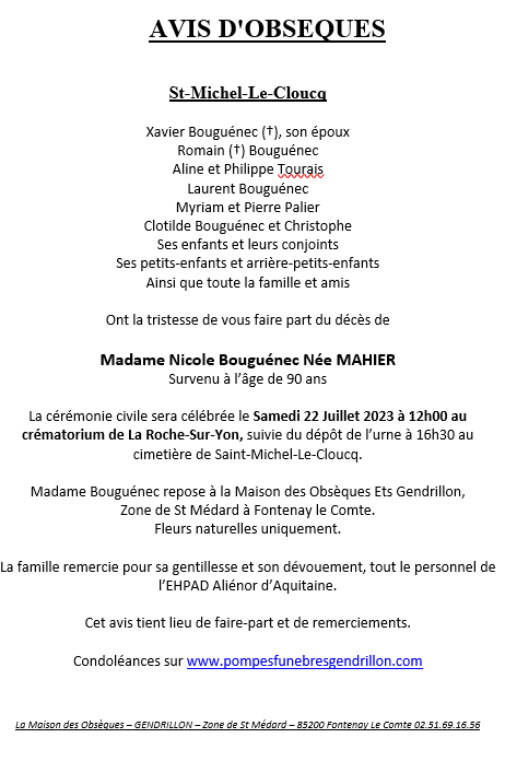 de Madame Nicole BOUGUÉNEC née Mahier