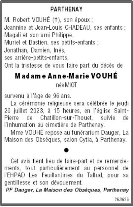 de Madame Anne-Marie VOUHÉ née MIOT
