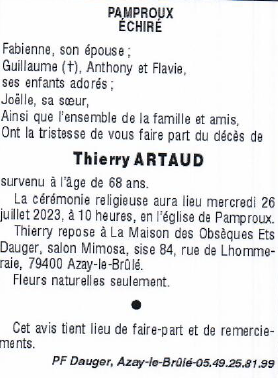Cet espace « condoléances » est dédié à la mémoire de Monsieur Thierry ARTAUD.