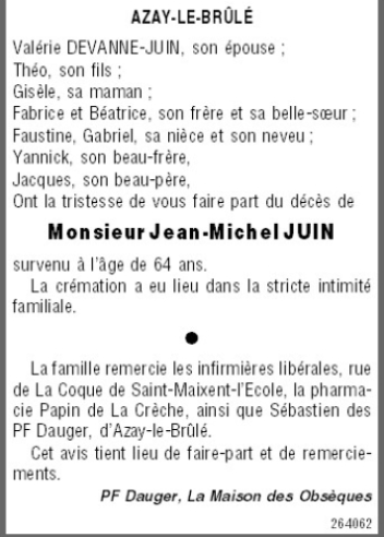 Cet espace « condoléances » est dédié à la mémoire de Monsieur Jean-Michel JUIN.