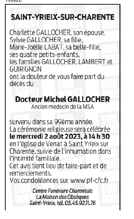 de Monsieur Michel GALLOCHER