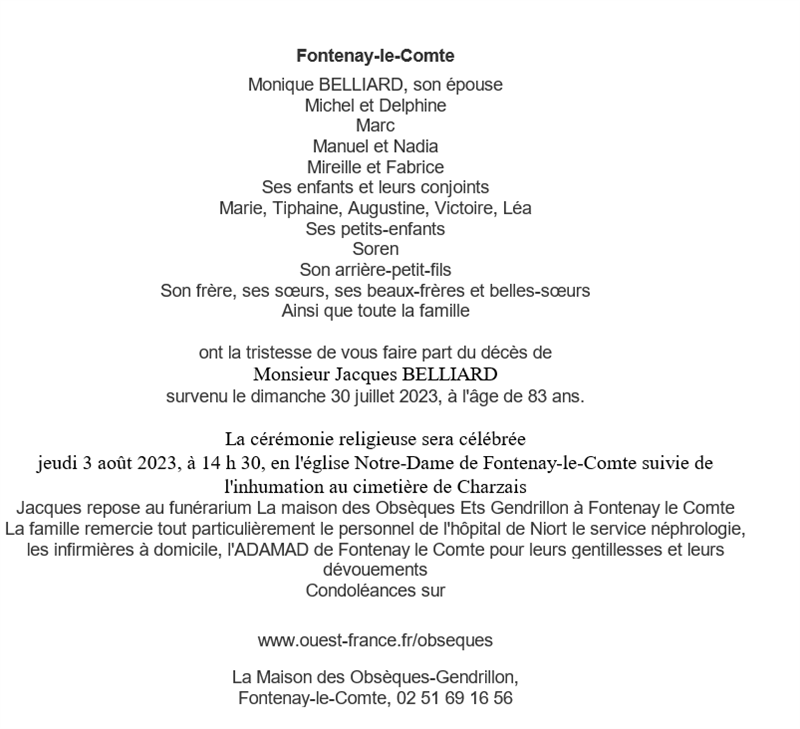 Cet espace « condoléances » est dédié à la mémoire de Monsieur Jacques BELLIARD.