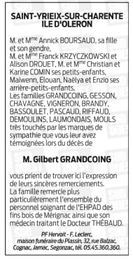 Cet espace « condoléances » est dédié à la mémoire de Monsieur Gilbert GRANDCOING.