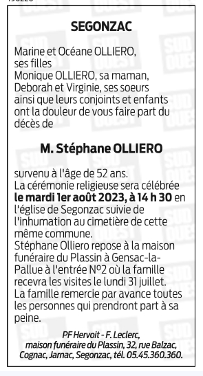 Cet espace « condoléances » est dédié à la mémoire de Monsieur Stéphane OLLIERO.