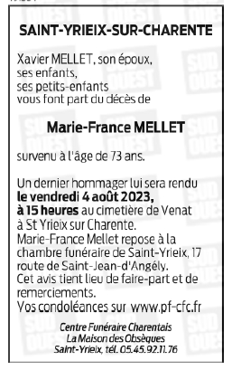de Madame Marie-France MELLET née CROIZARD