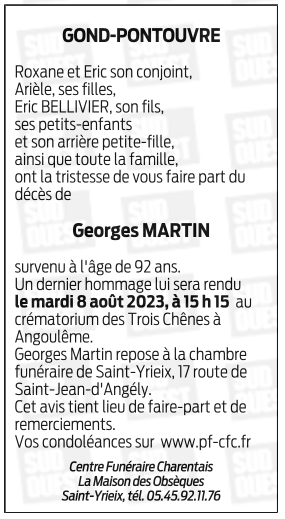 Cet espace « condoléances » est dédié à la mémoire de Monsieur Georges MARTIN.