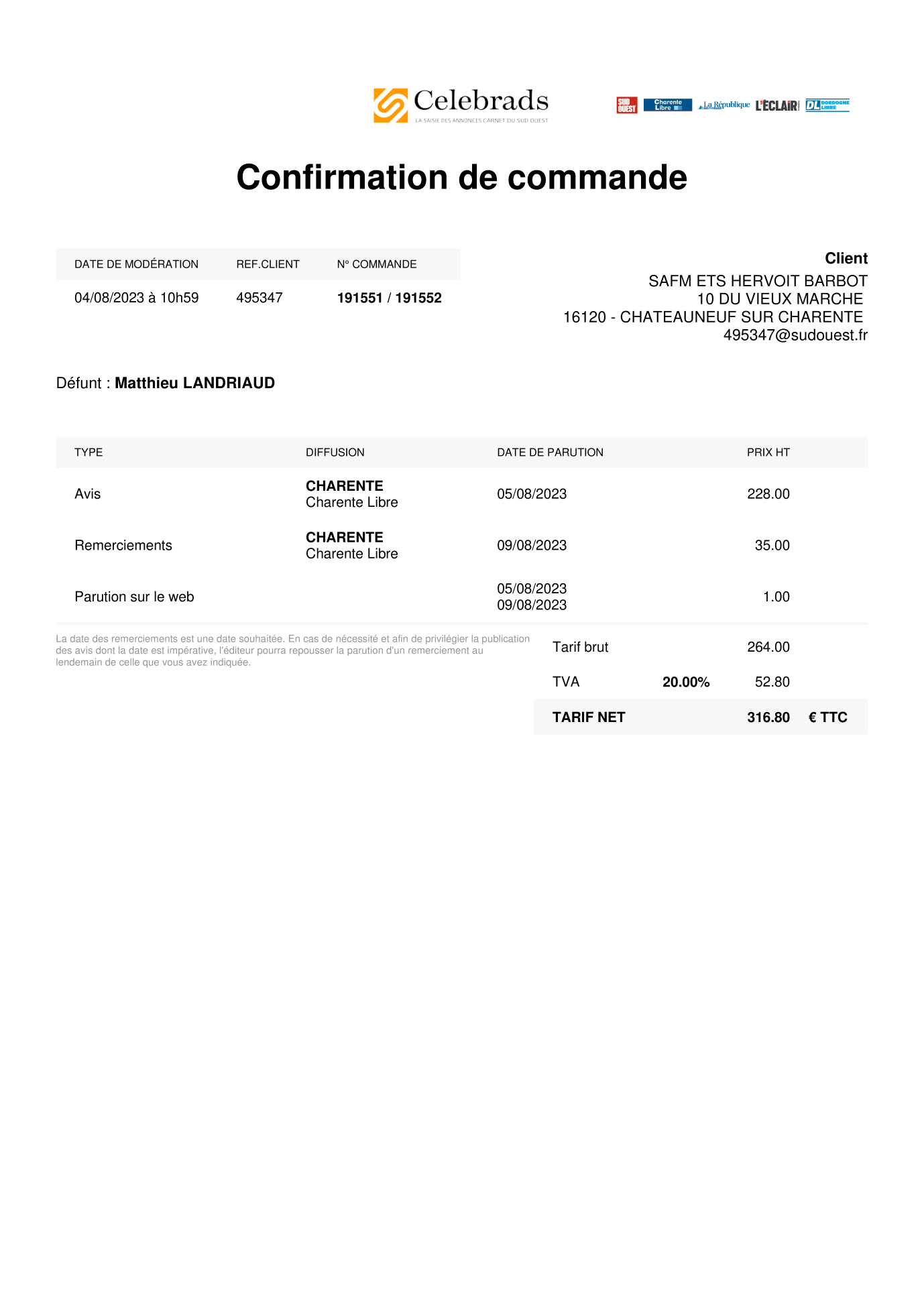 Cet espace « condoléances » est dédié à la mémoire de Monsieur Matthieu LANDRIAUD.