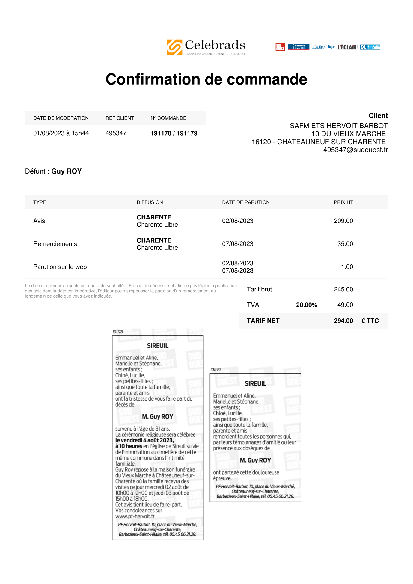 Cet espace « condoléances » est dédié à la mémoire de Monsieur Guy ROY.
