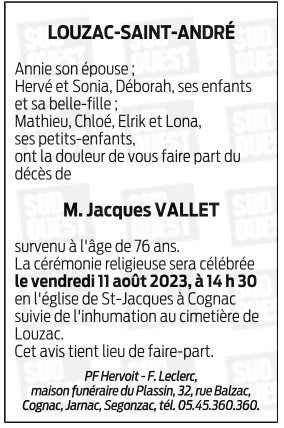 Cet espace « condoléances » est dédié à la mémoire de Monsieur Jacques VALLET.