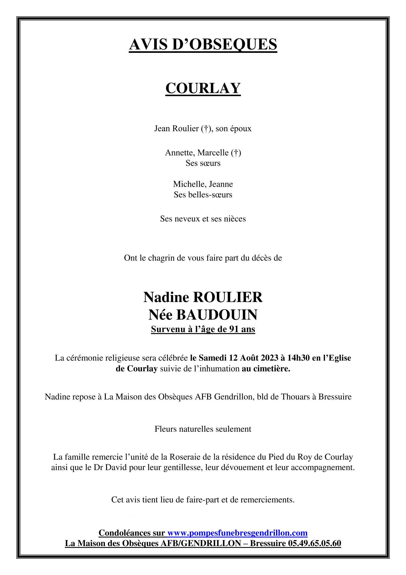de Madame Nadine ROULIER née BAUDOUIN