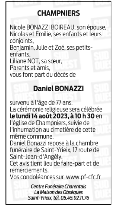 Cet espace « condoléances » est dédié à la mémoire de Monsieur Daniel BONAZZI.