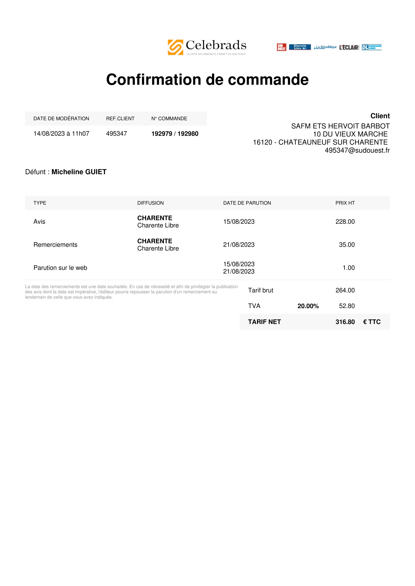 N’hésitez pas à renseigner cette page à vos connaissances. Ceux qui sont loin ou qui n’ont pas la possibilité de se joindre à la cérémonie trouveront ici une façon simple de montrer leurs sentiments à la famille dans ce moment difficile.