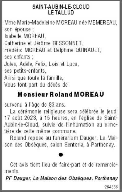 de Monsieur Roland MOREAU