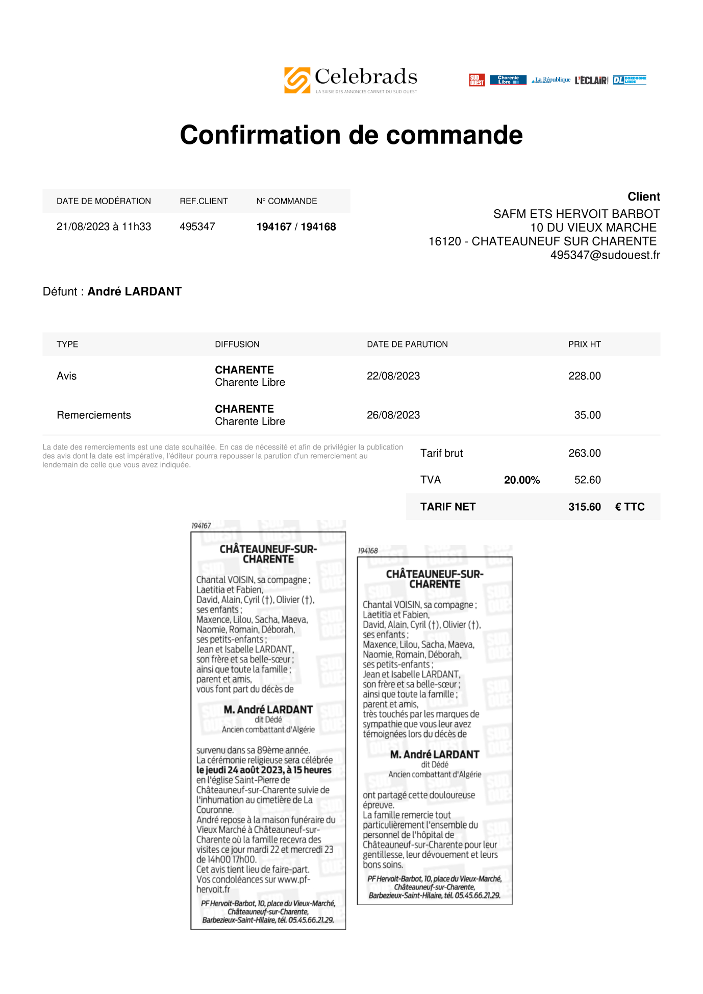 Cet espace « condoléances » est dédié à la mémoire de Monsieur André LARDANT.
