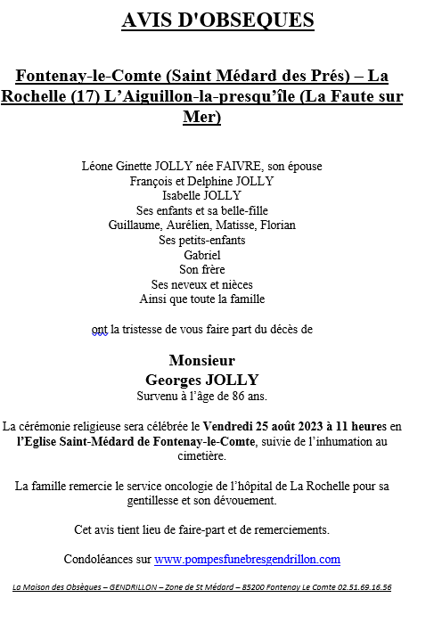 Cet espace « condoléances » est dédié à la mémoire de Monsieur Georges JOLLY.