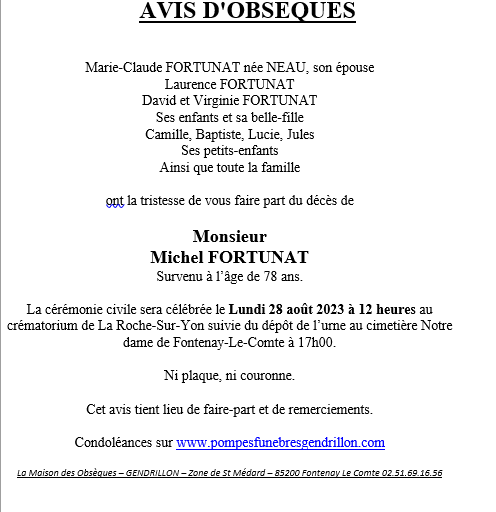 Cet espace « condoléances » est dédié à la mémoire de Monsieur Michel FORTUNAT.