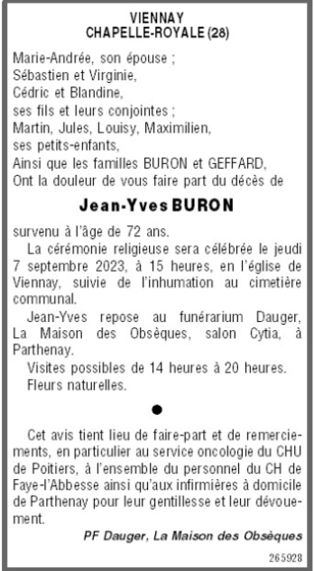 Cet espace « condoléances » est dédié à la mémoire de Monsieur Jean-Yves BURON.