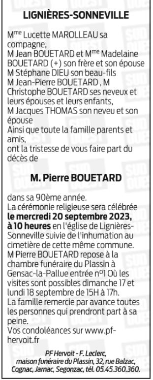 Cet espace « condoléances » est dédié à la mémoire de Monsieur Pierre BOUETARD.