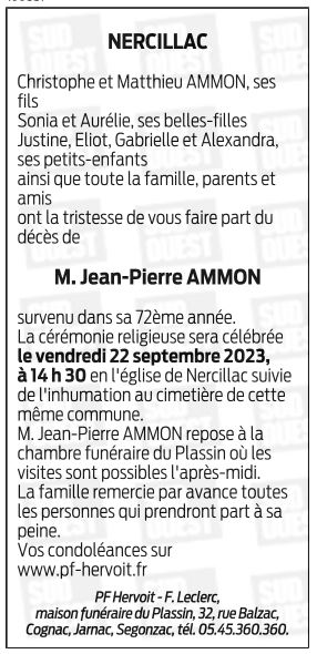 Cet espace « condoléances » est dédié à la mémoire de Monsieur Jean Pierre AMMON.