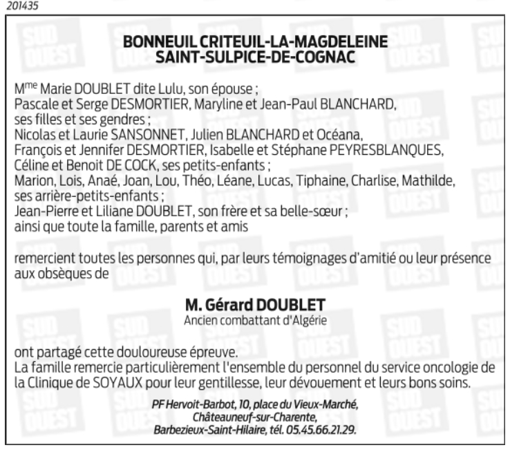 de Monsieur Gérard DOUBLET