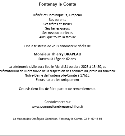 Cet espace « condoléances » est dédié à la mémoire de Monsieur Thierry DRAPEAU.