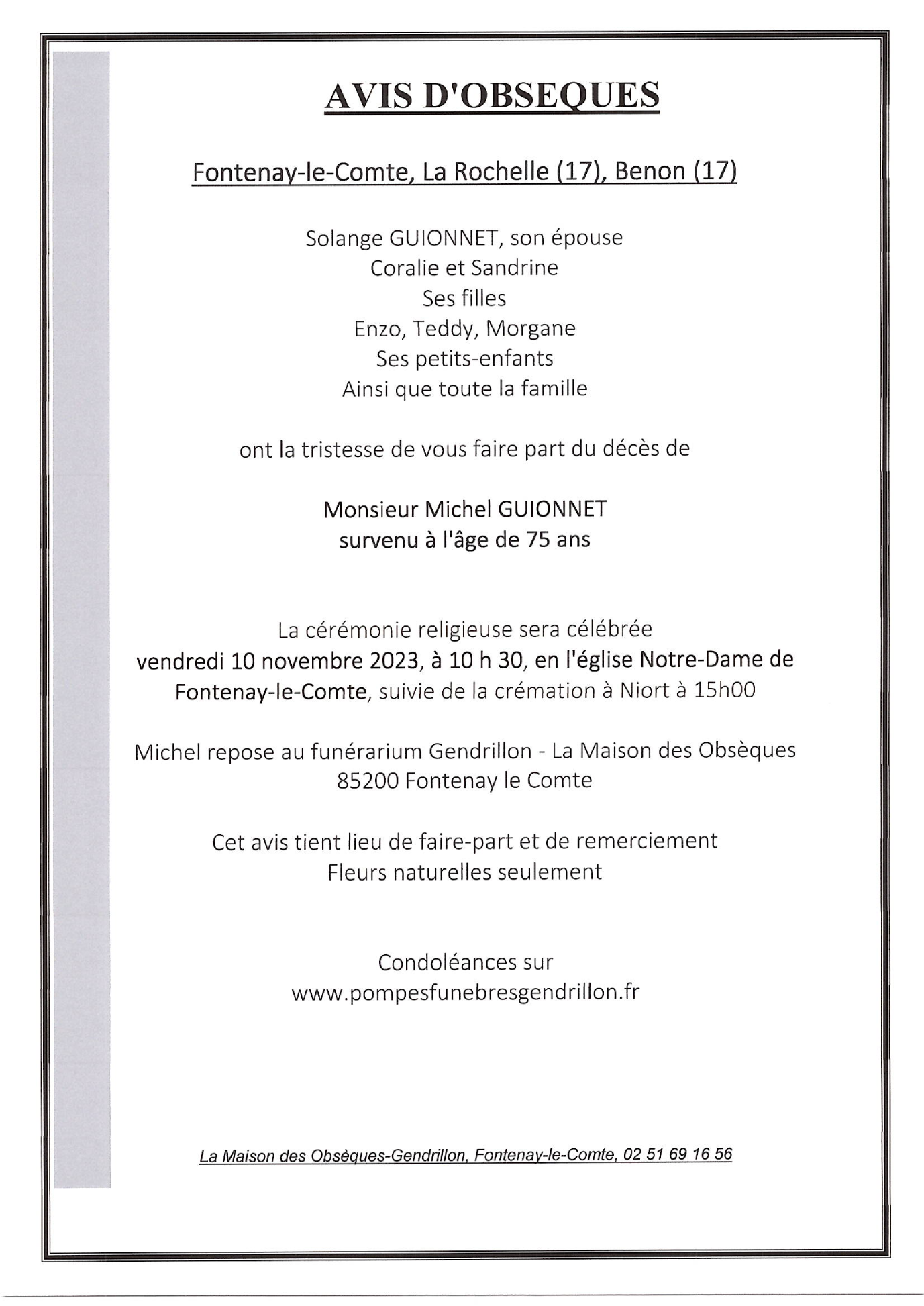 Cet espace « condoléances » est dédié à la mémoire de Monsieur Michel GUIONNET.