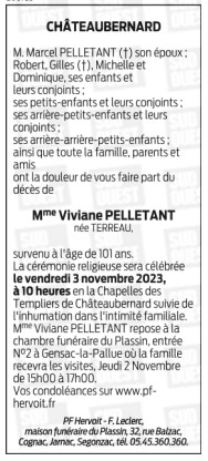 Décédée à Cognac (16100) le mardi 31 octobre 2023
