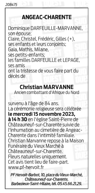 de Monsieur Christian MARVANNE