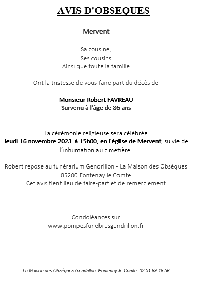 Cet espace « condoléances » est dédié à la mémoire de Monsieur Robert FAVREAU.