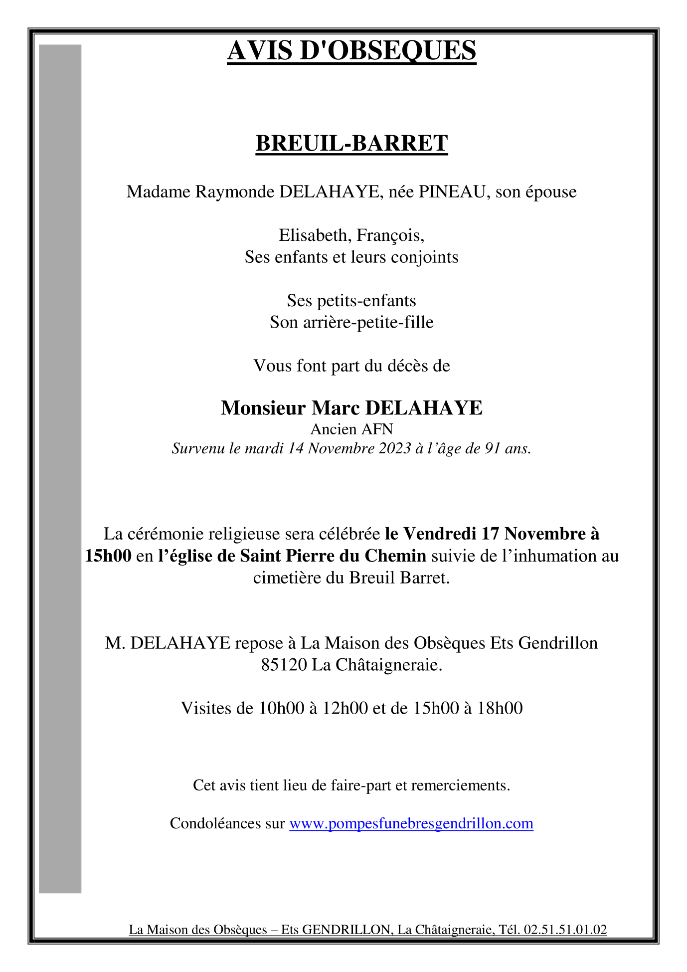 Cet espace « condoléances » est dédié à la mémoire de Monsieur Marc DELAHAYE.