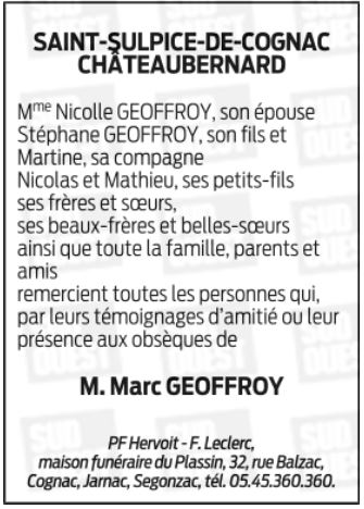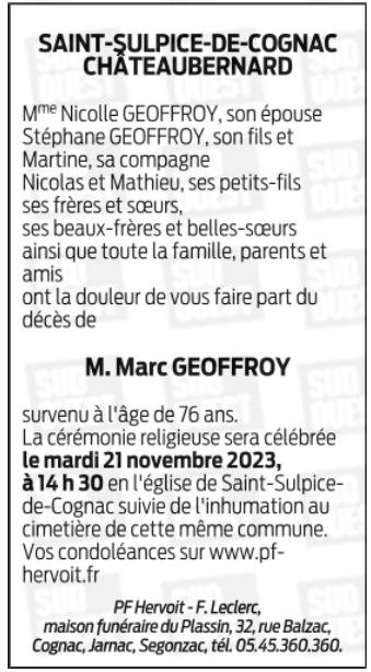 Cet espace « condoléances » est dédié à la mémoire de Monsieur Marc GEOFFROY.
