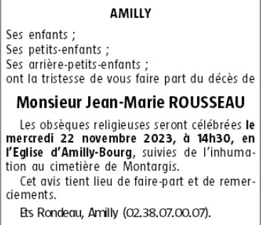 Cet espace « condoléances » est dédié à la mémoire de Monsieur Jean-Marie ROUSSEAU.