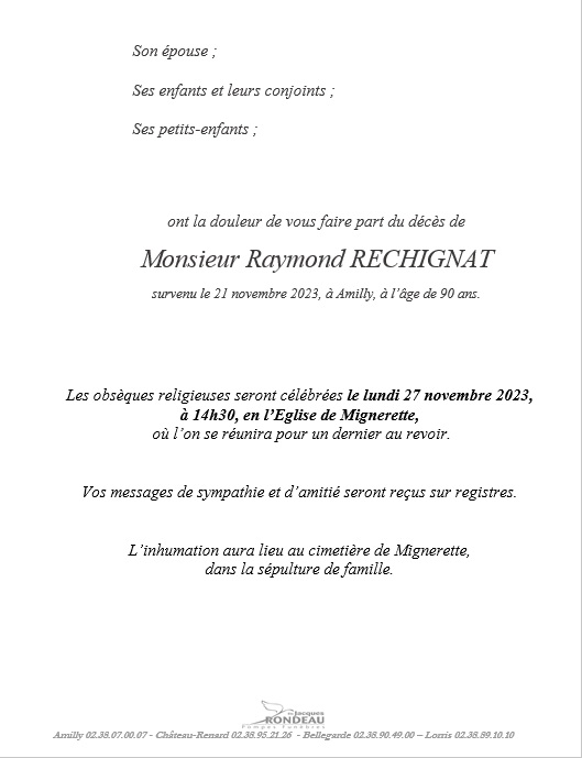 de Monsieur Raymond RECHIGNAT