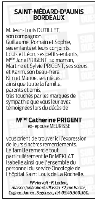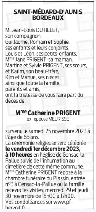de Madame Catherine MEURISSE née PRIGENT