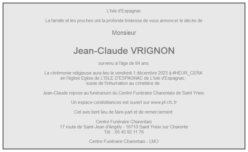 de Monsieur Jean-Claude VRIGNON