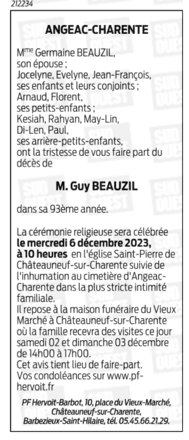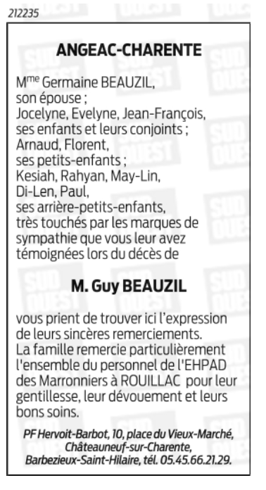 Cet espace « condoléances » est dédié à la mémoire de Monsieur Guy BEAUZIL.