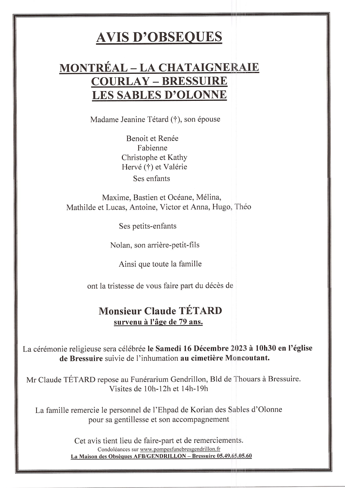 de Monsieur Claude TÉTARD