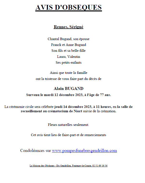 Cet espace « condoléances » est dédié à la mémoire de Monsieur Alain BUGAND.