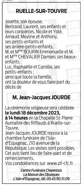 Cet espace « condoléances » est dédié à la mémoire de Monsieur Jean JOURDE.