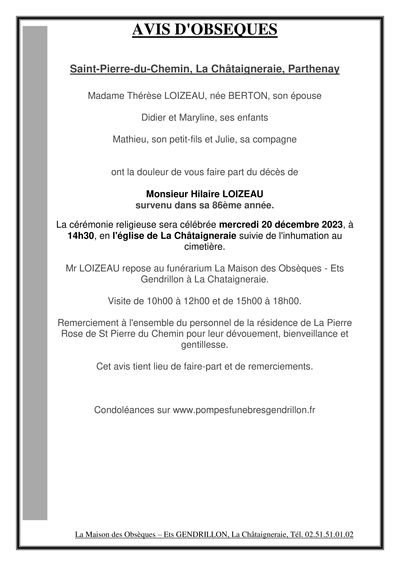 de Monsieur Hilaire LOIZEAU