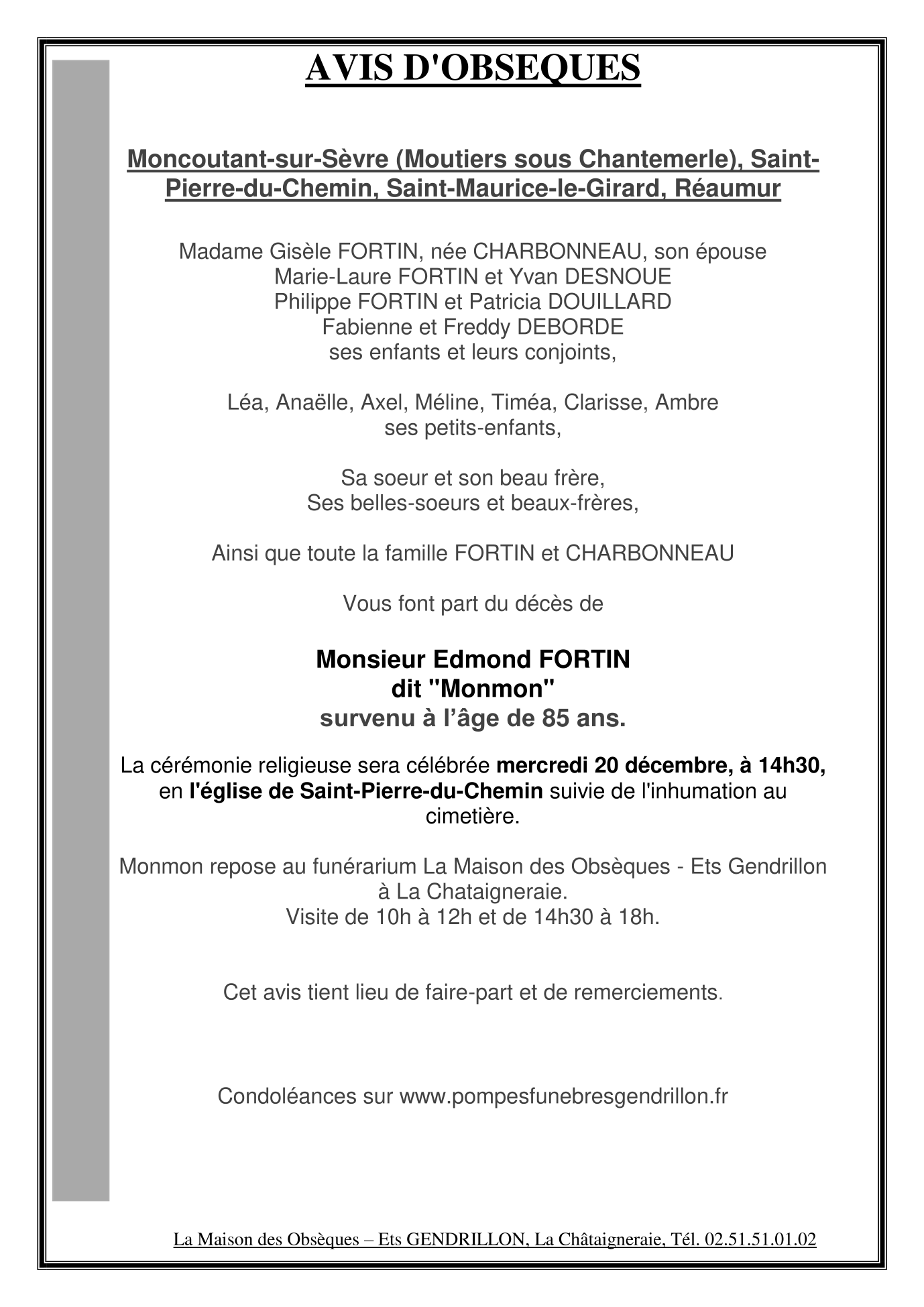 de Monsieur Edmond FORTIN